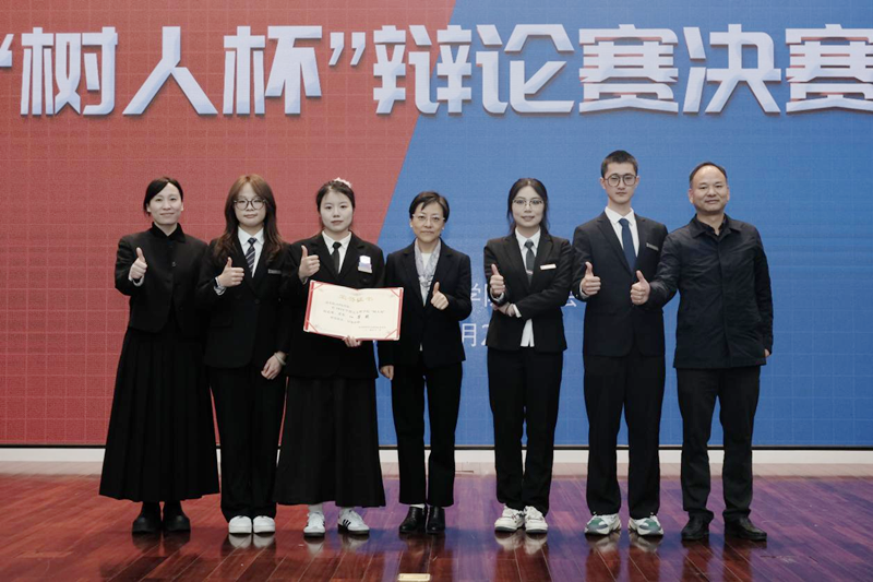 赛后,校党委委员、纪委书记、监察专员唐晓青与学院辩论队合影