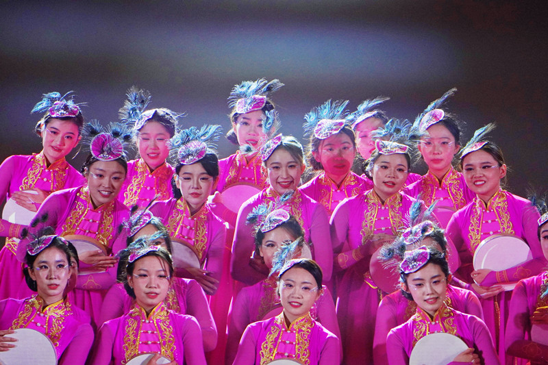 华灯初绽,弦歌起。本场晚会分为 “古韵新声 共庆华诞”、“筑梦山海 强国有我”和“璀璨新程 青春启航”三大篇章。乐器大合奏《梦回临安》拉开晚会帷幕,舞蹈《茶飘香》流淌着千年华夏的典雅韵致,走秀《Sing It Back》闪耀现代时尚的活力光芒, 歌曲联唱《少年》《送你一朵小红花》激昂嘹亮,舞蹈《青丝白发》婉约悠扬,朗诵《盛世华章,国之荣光》铿锵有力,古筝合奏《市集》满溢生活的烟火气息,舞蹈《鼓声响起的地方》燃烧奋进的炽热激情,合唱《身骑白马》传递梦想的灵动音符。晚会在歌曲对唱《幸福中国一起走》的悠扬旋律中圆满收官。
