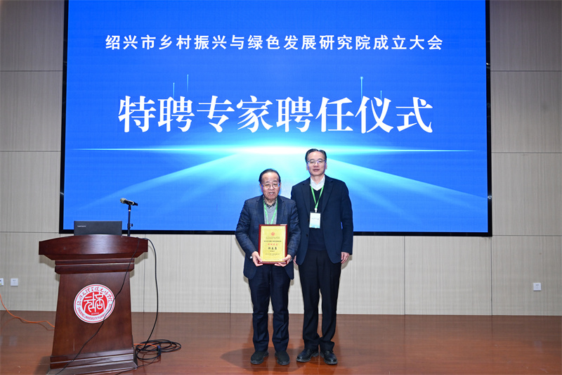 张宏为绍兴市乡村振兴与绿色发展研究院特聘专家顾益康教授颁发聘书