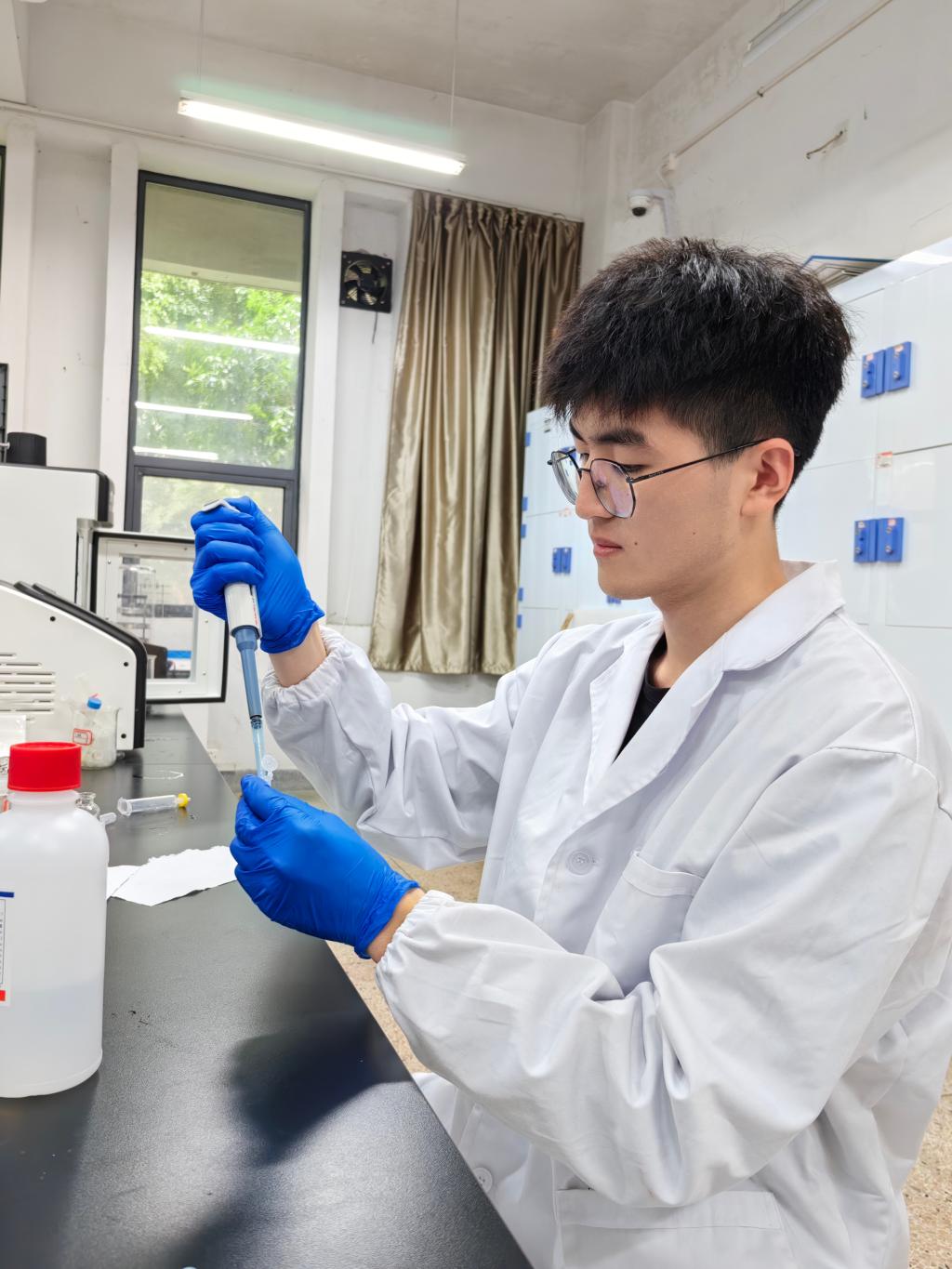 在实验室的试剂架前,俞吉阳常常一待就是一整天。自课题立项以来,他始终以“高效执行、细节把控”的标准严格要求自己。在设计实验方案时,他会查阅近百篇中英文文献,确保逻辑严密;在摸索实验条件时,他会进行数十次重复试验,以排除偶然因素,最终构建出稳定可靠的实验体系。他将全部课余时间倾注于实验室,在无数次的实验失败与方案调整中,努力提升自身的科研能力。