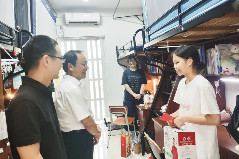 党课结束后,梁瑜带队前往学生公寓,走访慰问困难党员学生,为他们送去党组织的关怀与温暖。走访过程中,他与学生亲切交谈,细致询问学生家庭情况、学业进展及日常生活状况,认真倾听学生诉求,悉心叮嘱大家合理规划假期生活,在实习实践中锤炼专业技能,做好安全防护,以充实有获的假期为新学期积蓄奋进力量。