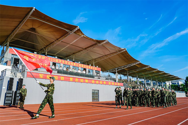9月12日,绍兴理工学院2025级学生军训成果汇报暨总结表彰大会在学校北区田径场举行。柯桥区人武部上校政委卢江、校军训工作领导小组组长梁瑜、副组长李黎等成员及全体新生、承训教官、连队指导员出席,汇报会由校军训工作领导小组副组长、军训团政委石旭明主持。