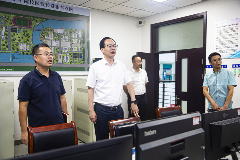 张宏一行来到网络中心、消控中心与监控中心等重点区域开展检查,与相关人员深入交流。他详细了解人员配置、设施设备维护保养情况以及突发事件应急处置流程等,要求全体工作人员以高度的责任心坚守岗位、实时盯防,守护校园平安,相关部门要压实责任,细化举措,筑牢安全防线。