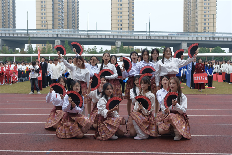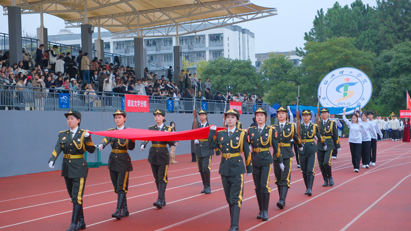 入场仪式上,国旗、校旗、运动会会旗方阵率先昂扬入场,各分院代表方阵、教工方阵依次惊艳亮相。队员们紧扣专业特色,以创意编排与特色表演,充分展现师生青春风采与团队凝聚力。健美操队、棒垒球队压轴登场,为开幕式注入满满运动活力与青春动感。