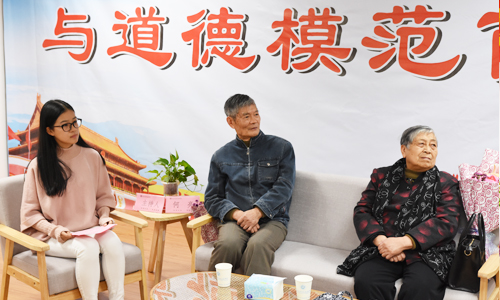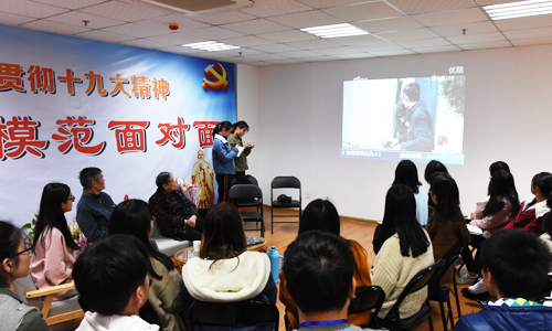 秋末初冬,已是微凉,学院大学生媒体中心工作室内却气氛热烈。简约的座椅,简单的布置。数十名各分院党务组学生、学院党员之家管理委员会成员齐聚一堂、团团围坐在何亮夫妇身边,认真倾听“小事虽微,道德为何而亮”除藓背后的故事,并不时向何爷爷与樊奶奶提问学习,现场气氛温馨而又厚重,温暖而又庄严。