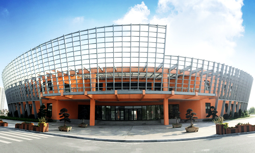 沿着学院西大门主干道,远远望去,沿河而建,建筑整体设计新颖别致,外立面采用银灰色钢架结构,内墙采用橘红色保温建筑材料,外形宛如鸟巢的师生活动中心在校园内格外显眼。