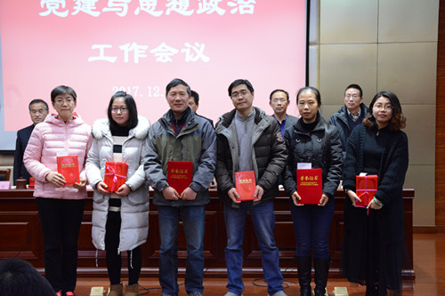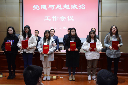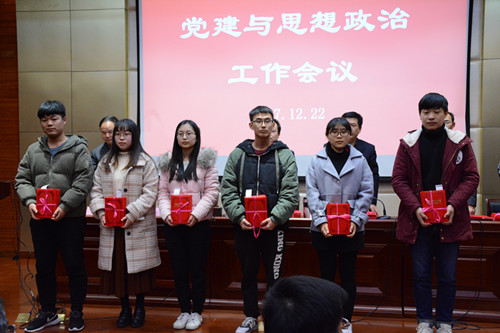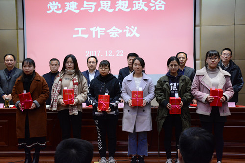 会议公布文明校园创建先进个人、优秀班主任、学生党员“先锋引领岗”争创先进个人、党的十九大精神知识竞赛获奖名单、优秀志愿服务项目和“廉洁微课”比赛获奖名单等系列先进表彰集体和个人。各先进代表依序上台领奖并合影留念。经济管理分院党总支书记、学工部部长、机关党总支第一党支部书记结合自身岗位实际及党建和思政工作成效作了经验交流发言。