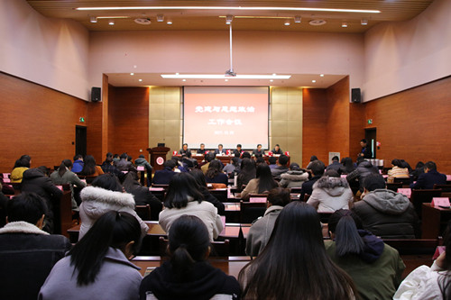 梁瑜围绕党建思政、意识形态、党风廉政建设以及安全稳定等工作从四个方面作了重要讲话:一是充分认识党的十九大对高校党建与思想政治工作提出的新要求、新任务,并从对教育赋予的新使命、提出的新任务及从严治党的新要求进行了重点阐述;二是回顾总结学院2017年党建与思想政治工作取得的成效,他指出,即将过去的一年,学院从严治党责任机制进一步强化,十九大精神学习宣传贯彻深入推进,党建、干部建设、意识形态工作进一步加强,大学生思想政治工作全面提升,党风廉政建设深入推进,校园安全工作日益深化。三是分析梳理工作中存在的问题与不足;四是对全面提升党建和思想政治工作水平提出要求,他强调,要继续深入推进十九大精神的学习宣传贯彻,全面贯彻落实高校思想政治工作会议精神,进一步加强基层党建、干部队伍、党风廉政建设、意识形态和校园安全稳定等工作。