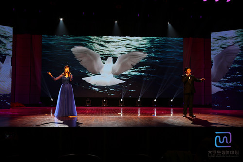 诗咏志,歌咏情。18点18分,晚会准时开场。学生诗歌朗诵《朋友,我想告诉你》开启晚会的第一篇章——畅想镜湖。晚会第二篇章——多彩元培在语言文学分院分工会表演的轻歌曼舞《风吹麦浪》中缓缓铺开,情深意浓的男女对唱,轻柔的歌声伴着曼妙的舞姿,仿佛让人置身于金色麦浪中,惬意舒适;由纺织服装与艺术设计分院分工会带来的服装表演《霓裳蹁》将晚会气氛推向高潮,独特的服装设计,强劲的T台音乐,规则的节奏感,自信乖张的走秀给现场观众带来了一场视觉盛宴;医药与健康分院分工会的歌伴舞《感恩的心》充满爱意温情;建筑工程分院分工会表演的匠心荟萃—民族舞、古筝、书法蕴含中华传统文化;信息与机电工程分院分工会的诗朗诵《沁园春·雪》豪情满怀;公共基础教育分院分工会的武术表演《军武飞扬》荡气回肠。师生创意小人舞、歌曲联唱等相继出演。曹敏、牛路男女对唱《共筑中国梦》再次将晚会推向高潮。一个个精彩的节目,一首首悦耳的歌曲,一支支动人的舞蹈火热高亢,温暖走心。现场高潮迭起,掌声与喝彩经久不息。在嘹亮优美的独唱《走进新时代》歌声中,晚会结束了第三篇章——拥抱明天。