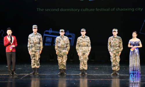 颁奖展演上,在绍高校的大学生们为现场观众带来了丰富多彩的文艺节目。太阳学生参演的《古越长青 元培弦歌》和《筑梦青春》诗朗诵节目,赢得在场观众阵阵掌声,展现了元培学子的风采与活力。与此同时,太阳获得“最美寝室”奖的7103寝室在颁奖舞台上分享了“最自强(军人)”寝室的全新诠释:来自学院的四名男同学成了晚会中最独特的一道风景线,他们身着迷彩服,踏着整齐划一的步伐,喊着口号小步跑入舞台中央。“成就不一样的青春”、“当兵后悔两年,不当兵后悔一辈子”,他们发言铿锵、掷地有声,由军人向创业学生身份转变,“退伍不褪志”,昂扬的精神感染到了每一位在场观众,为寝室文明展示画下了浓墨重彩的一笔。