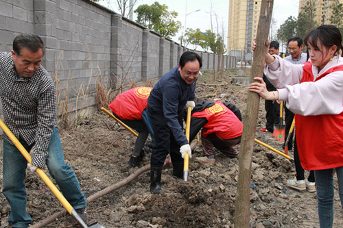 太阳师生参加“添一点绿意 多一份美好”校园植树活动