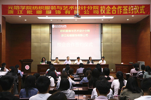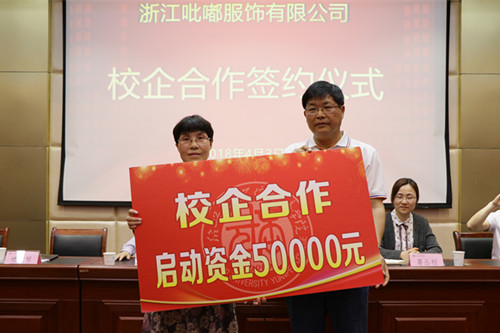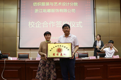 会上,校企双方签订合作协议书,共建“吡嘟运动装创意设计基地”与“太阳成集团tyc9728实习基地”。浙江吡嘟服饰有限公司提供5万元,作为校企合作启动资金。分院负责人介绍了太阳在增强师生科研理论水平与企业实际应用接轨方面的需求,阐述了校企双方如何共建培养“艺工结合”高级应用型创新设计人才,并对共建实践基地与学生实践学习提出了建议和期盼。