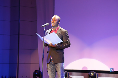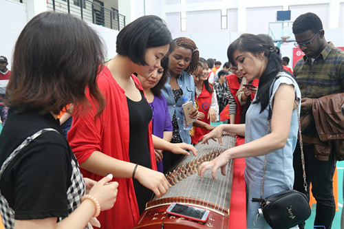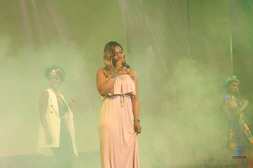晚会上,来自科特迪瓦的留学生演唱《映山红》