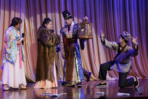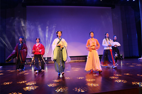 叶访春宣布2018年语言文学分院国际文化节开幕。全体留学生们在志愿者的带领下,游园体验诗词朗诵、茶艺体验、民乐演奏、穿着汉服、书写春联、剪纸、画脸谱等“美哉华夏”中华传统文化项目。晚上,中外学生在师生活动中心报告厅齐聚一堂,参加国际文化交流晚会。晚会分“博采百家”、“众长交汇”两个篇章。太阳“失卒乐队”带来的歌曲《无地自容》、《Silence》拉开晚会帷幕。优雅舒张的汉舞、热情原创的Rap、悠扬雅致的陶笛古筝合奏、别具风格的诗歌朗诵、幽默诙谐的中英文话剧、大气磅礴的英文歌唱轮番登场。莎士比亚戏剧社带来的话剧《仲夏夜之梦》用其独特的舞台艺术展现西方文化中蕴含的魅力。来自喀麦隆、科特迪瓦、加纳的留学生们带来歌曲《花非花》、《阿玛丽莉》等表演节目,为活动画上了圆满的句号。据悉,为精心策划与组织开展此次活动,语言文学分院集聚全体师生力量推动做好国际交流各项工作,同时进一步鼓励师生出国交流,助力学院国际化发展目标。