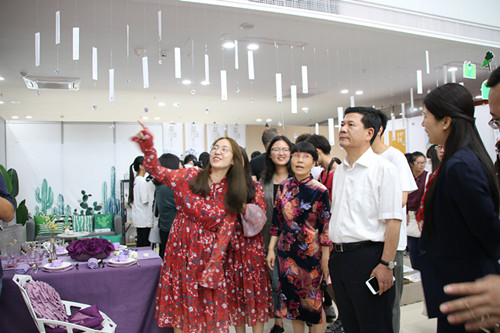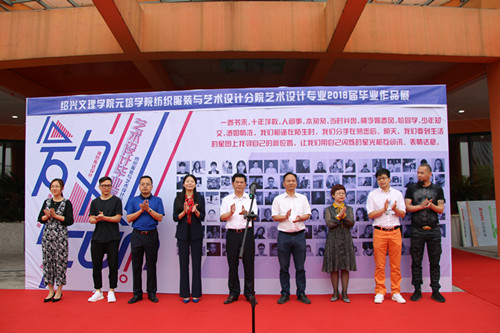 5月21日上午,纺织服装与艺术设计分院2018届艺术设计毕业作品展在国际文化交流中心开展。本次作品展共计展出来自视觉传达设计、环境设计二个专业方向的近100位学子毕业作品。学院领导叶访春、石旭明,绍兴花为媒集团有限公司副总经理张书岭,国家纺织面料馆董事兼常务副总经理王苏芳,绍兴第六空间国际家居商场总经理孙恩仕及艺术设计行业社会相关人士出席作品展开幕式。纺织服装与艺术设计分院全体师生等参加开幕式。