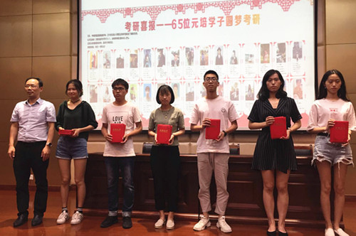 宣传先进典型事迹,打造优秀毕业季。积极开展励志典型宣传教育,多渠道宣传展示优秀毕业生和优秀毕业班集体的先进事迹和成才故事,充分发挥优秀毕业生集体和个人的示范引领作用。精心组织召开考研经验交流会,考研成功同学的考研书籍和复习资料成了会上的“抢手货”;学长学姐的出国就业心得和经验更是向学弟学妹们倾囊相授、毫无保留;推选组建毕业生宣讲团,把大家在敬业奉献、创新创业、扎根基层就业等方面取得突出成绩的先进人物推到“前台”,通过组织事迹报告会、经验交流会等形式,加强与低年级学生的经验交流及教育引导,推动优良学风的形成。