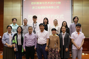 纺织类专业与浙江吡嘟嘟有限公司、花为媒有限公司、绍兴中小纺织企业促进会合作签约