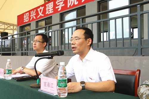 庄严的奏国歌仪式后,宣海江作军训动员报告。他指出,大学生军训不仅是学校人才培养中的一门必修课,更是《兵役法》赋予大学生的一项光荣义务,是国家开展全民国防教育的基本形式。通过军训,要进一步把每一位学生都培养成为具有坚定理想信念、严密组织纪律、良好精神风貌、高度文明素养的优秀公民。为此,他对全体同学提出三点希望和要求:一是心系国家社会,坚定理想信念,强调军训的意义。要深刻领会军人的责任与荣誉,体会军人使命的崇高与纪律的神圣,彰显青年人的自信与豪迈,更好履行军训义务,同时通过军训和学习不断深化对“中国梦、强国梦、强军梦”等重大命题的认识和理解,进一步增强民族自尊心、自信心和自豪感,以实际行动追求理想、服务社会、报效祖国。二是砥砺磨炼,全面提升,强调军训的内容。要在军训中既练意志,又练筋骨;既练思想,又练技术,以饱满的精神和顽强的意志出色完成各项训练任务;要紧跟形势与要求,做到军训与社会主义核心价值观教育相结合、与爱校荣校教育相结合、与应用型人才综合素质培养相结合、与安全教育相结合。三是严守纪律,争当模范,强调军训铁的纪律。要从思想上和行动上以军人的标准严于律己,实现由文化学习环境到军事训练环境的转变,实现从大学生到士兵的转变,进一步克服自身不足,发扬军人革命精神,做到尊重教官、服从安排,听从指挥,努力培养团结互助、密切协作、奋发向上的团队精神。