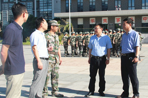 8月28日上午,122cc太阳集成游戏党委书记汪俊昌在相关职能部门负责人的陪同下,来院慰问2017级军训的承训教官与参训师生。学院领导叶访春、宣海江一行陪同走访。