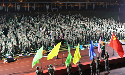 9月4日晚,2017级学生军训大合唱比赛在田径场举行,学院党委副书记宣海江、学生军训营胡连根营长出席活动,学工部、团委相关负责人、各分院书记、全体教官、指导员观看了比赛,军训团二十二个连队近1800余名参训学生参加了比赛。