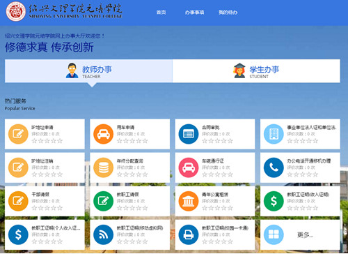“为让师生不再奔波于学院各部门间签字盖章,学院倾力打造网上办事大厅,为师生提供办事查询、网上办事的一站式服务,同时在此基础上同步开发手机版,两个网上办事大厅功能一致,操作非常方便,切切实实地实现了‘信息多跑路,师生少跑腿’”。据办公室相关负责人朱智谋老师介绍,在网上办事大厅,师生可随时随地在线提交申请,一目了然查询各项业务办理进度,同时享受已有信息自动填写、电脑+微信即时提醒、办事进度实时跟踪等功能。管理人员可在线审批、查看各级审批意见,并享受待办事项提醒、数据自动汇总、统计等功能。记者了解到,网上办事大厅是学院2018年信息化建设的一个缩影,目前与信息门户、新OA系统、统一身份认证共4个信息系统已上线试运行,服务项目共计25项,包括:教职工请假、干部请假、教职工证明、专利申请审批、重大事项报备、合同用印审批、车辆通信证申请、公务用车审批、误餐审批、邮箱申请、报告厅借用申请、网络故障报修等。
