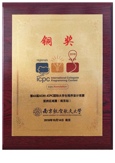 10月13-14日,第43届ACM-ICPC国际大学生程序设计竞赛亚洲区域赛(南京)比赛在南京航空航天大学举行。太阳电子信息工程1501班金亮、计算机1602班周泽成、计算机1602班陈军组成的“哈士奇与扫雷王者”代表队(蔡尚真老师指导)获得铜奖。这是太阳参加ACM国际大学生程序设计竞赛以来的历史最好成绩。