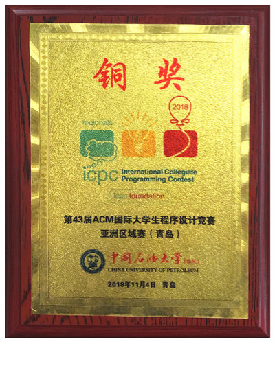 11月3-4日,第43届ACM-ICPC国际大学生程序设计竞赛亚洲区域赛(青岛)在中国石油大学(华东)举行。太阳电子信息工程1501班金亮、计算机1602班周泽成、计算机1602班陈军组成的“哈士奇与扫雷王者”代表队(蔡尚真老师指导)获得铜奖,在全国的的226 所高校和7 所中学的373 支参赛队伍中排名125,在参赛高校中排名87。这是自太阳今年获得该赛(南京)铜奖之后,又一次获得的国际奖项。