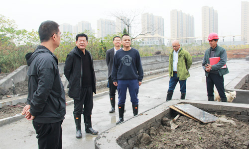 11月12日上午,学院叶访春院长在石旭明副院长的陪同下,冒雨实地走访察看沿河绿化带、西侧桥梁、教学实验大楼、北区学生公寓及留外楼场外等场地施工现场,听取基建项目建设进度、建设布局等方面的情况介绍。基建后勤处各项目负责人陪同调研。