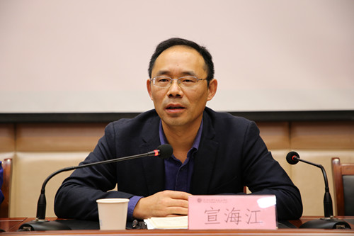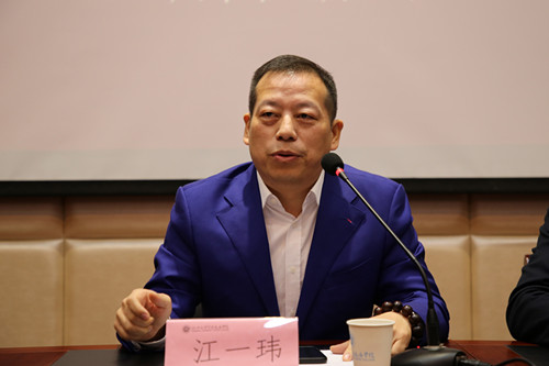 宣海江代表学院向与会各位企业嘉宾一行表示热烈欢迎,向关心支持学院建设发展的绍兴中小纺织企业促进会表达敬意和感谢,并提出三点希望:一是希望分院人才培养机制和内涵质量再发展。要认真研究社会市场需求,多元化拓展招生渠道,提前谋划做好招生等各项工作。二是希望校企合作、产教融合协同育人工作再深入。要进一步整合和优化资源,开展多项校企合作项目,搭建实践育人平台,促进校企协同育人与深度融合。三是希望同学们实习就业效能再提高。要不断适应社会规范,加强学习传统文化,提高个人社会化程度,促进综合素质与社会实践能力的提升。