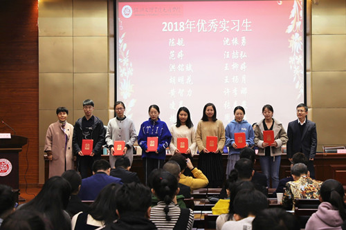 王利生与分院相关负责人分别为14名优秀实习生颁奖