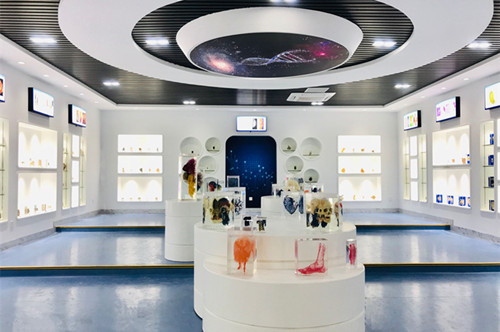 人体生命科学馆占地面积约400㎡,分为人体标本陈列区和人体解剖实训实验区两大区域,其中人体标本陈列区设胚胎解剖标本展区、运动系统展区、消化系统展区、呼吸系统展区泌尿系统展区、脉管系统展区等14个展区,陈列骨骼标本、大体陈列标本、护理标本、断层标本、穴位标本、铸型标本、塑化标本及人体器官标本500多件,通过丰富的图文导视、直观的人体标本、逼真的互动系统,结合多媒体虚拟教学和移动式互动展馆技术,将传统的人体解剖标本与虚拟教学和现代化超媒体技术相结合,注重学习者和参观者的参与感和体验感,让观者认识自己的身体,了解生命科学的奥秘。“很感谢学院为我们提供的这个专业学习的平台。这些人体器官标本展示了简单而又复杂的人体结构与生命历程,典藏着大量的医学知识,更好的帮助我们理解所学的理论知识,同时也让我对生命有了更深刻的思考与感受”。医药与健康分院护理专业学生俞颖琦说道。