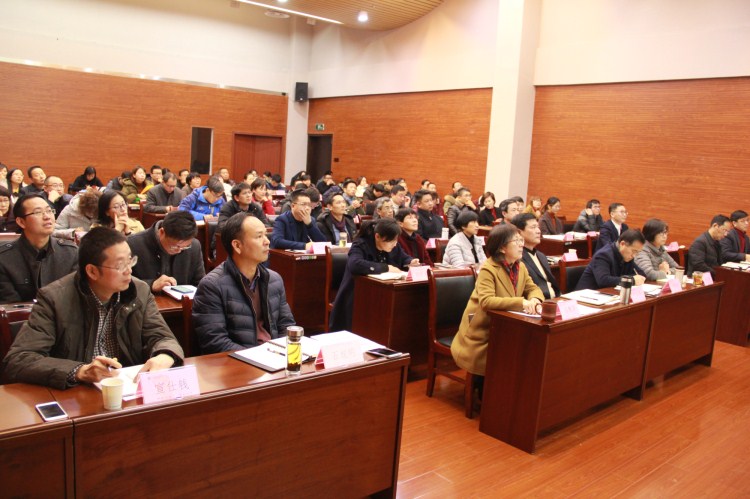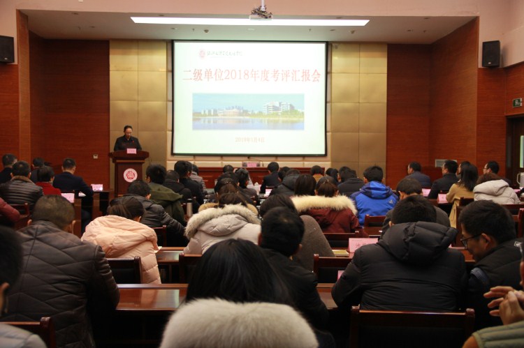 为更好地总结回顾2018年工作,展示工作成果,推进目标管理量化考核落地落实,1月4日下午,学院二级单位2018年度考评汇报会在图书馆828会议中心召开。学院全体党政班子成员出席考评汇报会,主管及以上干部、高职称高学历教师代表、民主党派代表、普通教职工代表参加考评汇报会。考评汇报会由学院党委副书记宣海江主持。