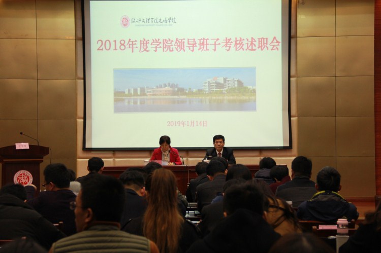1月14日下午,2015-2018年度学院领导班子届末考核暨2018年度领导班子考核述职会在图书馆828会议中心召开。校党委副书记郝敬习出席并主持会议,院领导叶访春代表学院党委行政对本届班子特别是2018年以来的工作进行述职。学院党政班子成员、主管及以上干部、教师代表参加会议。