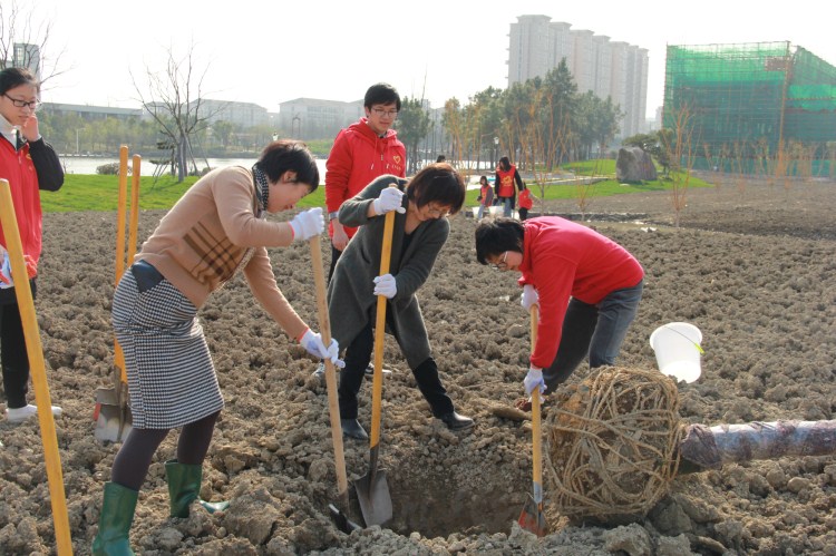 阳春淀绿,大地回春,为进一步提高全院师生的绿化意识和文明素养,营造良好的校园环境,学院以植树节为契机开展春季植树活动。3月12日下午,在叶访春、吕慧萍、朱小芳、石旭明等学院领导的带领下,各工会小组教师代表与大学生志愿者百余人在明德桥北端以西新建广场共同参加义务植树活动。短短两小时不到的时间,共种植无患子十余棵。