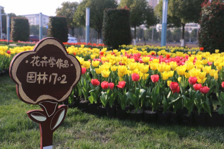 郁金香的花期虽然只有短短的一个月,但这背后,是我们园林专业的全体师生近半年的辛苦付出。陈同学说。从挑选种球,调配土壤,到营造适宜温度,创造良好的光照时间,同学们都亲自上手,动手种植;泥炭土和蛏石以什么样的比例混合,郁金香种球怎样放入泥土,在老师们的现场教学指导下,同学们将理论与实践充分结合起来,所学亦所用。“这种情景教学除了可以加深同学们对专业知识的理解,还能提升他们的意志品质。亲自使用铁锹种植花卉,亲手碰触泥土能更好地培养他们不怕脏、不怕累的专业情怀,提高对将来就业形势的认识水平。”园林专业负责人王国夫老师说道。