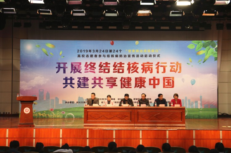 3月24日是第24个“世界防治结核病日”。为了贯彻落实健康绍兴、健康越城的总体部署,营造共同参与结核病防治的良好氛围。3月22日下午,以“开展终结结核行动,共建共享健康中国”为主题的高校志愿者结核病防治知识传播活动启动仪式在国际文化交流中心报告厅举行。绍兴市卫生健康委疾控处处长沈桁钧、学院副院长石旭明与绍兴市教育局、绍兴市疾控中心、越城区卫健局等相关负责人出席仪式。学院近500余名师生志愿者们参加仪式。启动仪式由越城区卫健局公共卫生科科长马振羽主持。