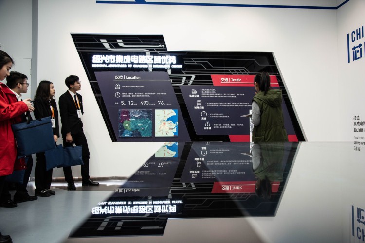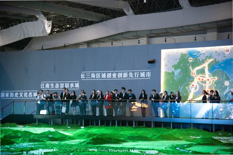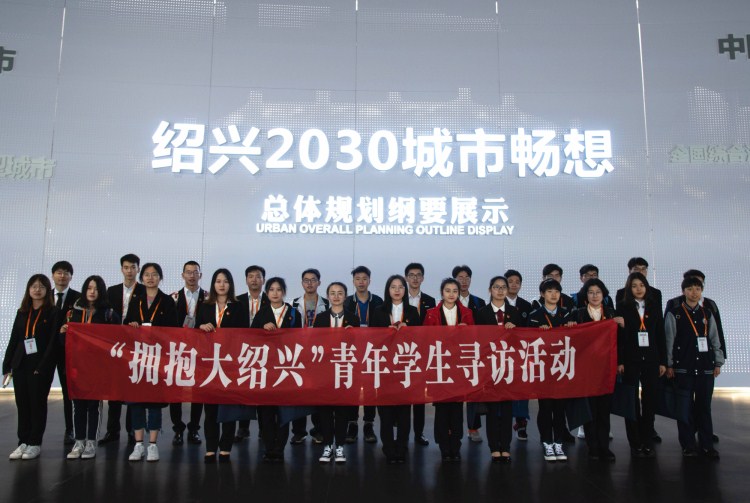与会人员参加“拥抱大绍兴”青年学生寻访活动,参观绍兴市城市规划馆、绍兴市集成电路小镇等