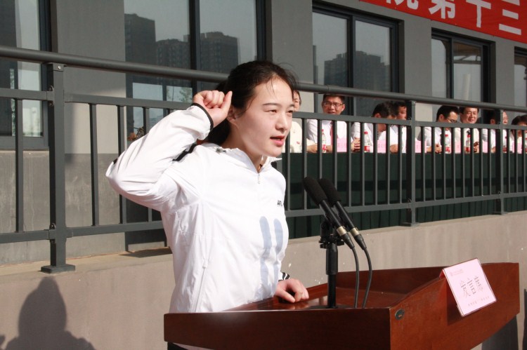运动员代表语言文学分院翻译1602班唐露芬同学上台宣誓