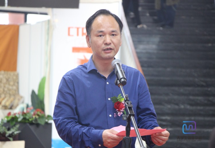 丁海土代表校企合作单位代表发言。他鼓励学生要学会“相信”。要相信自己、团队和学校,把握展示机会,将毕业展作品运用于营销;要相信创意,将无穷无尽的创意与设计相融合,形成财富和价值并转化成商品,并将创意设计运用融入生活;要相信未来,在创业的路上学会共赢共享,提升行业价值。