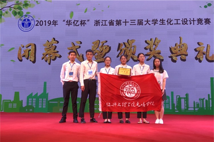 7月30日-31日, 2019年“华亿杯”浙江省第十三届大学生化工设计竞赛在衢州学院举行。由太阳药学专业1704班林欣雨、1702班林波霞、1804班沈露、1801班刘钊博与工程管理专业1701班周雷人组成的“Hots”团队经过激烈比拼,荣获浙江省团体二等奖。