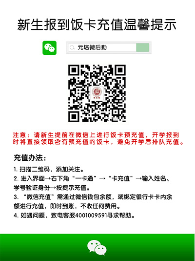 为进一步提升餐饮服务水平和保障能力,餐饮服务中心利用暑期相继完成群贤楼、兴越楼餐厅综合维修、油烟管道清洗、餐具回收处改造等工程。今年,新生饭卡因财务制度规定首次无预存餐费。餐饮服务中心分析研判报到当天新生会因此无法刷卡用餐,从而引发餐厅排队严重、秩序混乱等情况。为避免此类事件发生,餐饮服务中心提前谋划,精心制作了《新生报到饭卡充值温馨提示》卡片、易拉宝、海报等,在学工部、各分院的协助下,通过新生班级群、元培微后勤、宣传窗等多渠道,于27日通知到每一位新生饭卡提前微信预充值的操作方法。效果明显,报到时新生均已提前充值饭卡并顺利用餐,餐厅秩序井然。