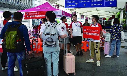 走进元培,提供周到服务。报到日当天,学生部统筹组织迎新工作,精心谋划迎新流程,充分做好迎新前期繁重的物品准备、场地划分等工作。特别是为保障新公寓正常投入启用,书院、分院协同相关部门,一一排查走访每件寝室,确能保为新生提供最好的居住环境;团委、各分院派出强大的志愿者团队,24小时坚守火车站迎接新生,将志愿服务做到细处、落到实处;保卫处设立迎新安保值班处,及时、有效处置各种突发事件,确保校内交通安全畅通;各分院领导、辅导员、班主任和志愿服务学生,24小时轮流值守,风雨无阻,为新生报到提供全方位热情周到的服务,耐心细致地解答新生及家长提出的各种问题;学院还专门开设了绿色通道,让家庭经济困难新生无障碍入学,顺利报到,使他们一进校门就感受到学院的温暖;各分院纷纷召开新生家长座谈会,家长们在座谈会上对学院的教学理念、办学条件,生活环境很感兴趣,同时对孩子的生涯规划、就业创业等问题也与老师们展开了深入的交流,家长座谈会有效建立了学校、家长良性互动的教育模式。