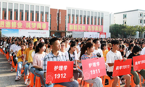 8月30日下午,学院2019级新生开学典礼在元培广场隆重举行。学院领导班子全体成员,各分院、职能部门负责人,教师代表,全体辅导员,2019级新生,新生班班主任,学生家长代表参加典礼。院党委副书记石旭明主持开学典礼。