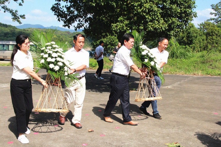 院领导向梁柏台烈士纪念碑敬献花篮