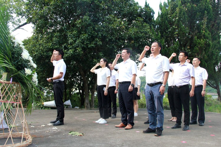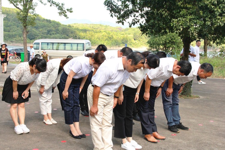 全体成员向梁柏台烈士纪念碑行三鞠躬