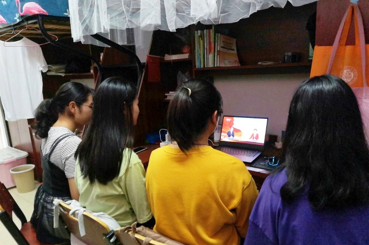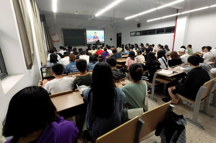 建筑工程分院师生在教学楼10幢104教室收看庆祝大会盛况