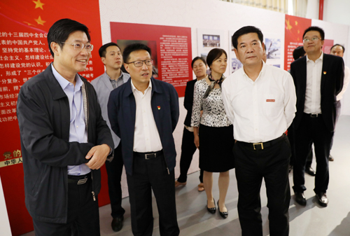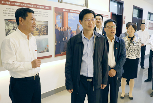 调研中,干武东一行先后参观了学院创新创业学院和红色学府。每到一处,干武东都详细了解大学生创新教育与创业实践情况、红色学府的建设理念与日常运行情况,并为学院的创新举措点赞。在听取了有关学院创新创业学院和红色学府建设情况的汇报后,干武东对太阳创新创业教育及党建与思想政治工作取得的成效给予了充分肯定。他指出,学院创新创业教育成效明显,党建与思想政治工作理念新、举措实、内容丰富、感染力强、富有特色。他强调,高校创建党建文化品牌大有可为,学院在巩固原有基础上,要进一步充分利用地方红色文化资源,结合学院实际,优化提升学院红色学府建设工作,让广大师生浸润在党建文化中,努力打造特色党建品牌,切实发挥党建引领作用,着力提高大学生思想政治工作水平和工作成效。