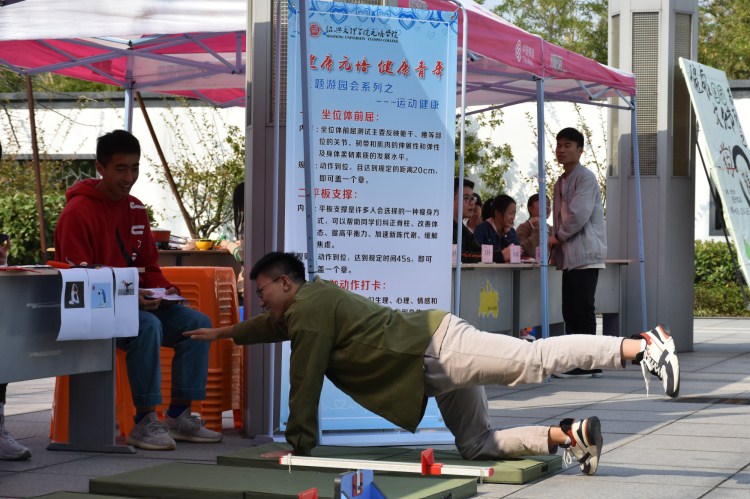 据分院相关负责人介绍,“健康文化节”是分院一项重要的团学品牌活动,本届“健康文化节”设置了运动健康、生理健康、心理健康三个活动区和健康文化宣传展示区及震元堂名医专家现场诊疗区,每位师生以游园会的形式参与平板支撑、瑜伽动作、心理拼图、参观人体科学馆等八项打卡活动,旨在通过活动进一步了解健康文化、学习健康技能,以沉浸式体验倡导全面健康理念。