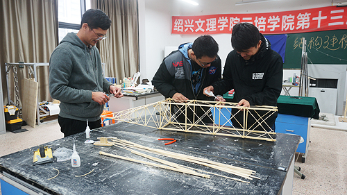 然而,在国赛中取得佳绩的三人,回到校园,并没有稍作放松和休息,他们还是如往常一般,一有空闲时间便到结构建模教室进行日常的训练。在采访中,谈起初次与结构建模结缘的经历,队长刘贤笑着回答道:“我们也是从大一开始因为兴趣参加了校赛,懵懵懂懂地做了两个模型,感受到了自己的不足。后来通过理论的学习以及手工制作的训练,就这样慢慢深入、探索,渐渐地就能够做出自己还算满意的作品了。”从建模“小白”到学弟学妹们眼中的“大神”。这其中的缘由,除了日常的训练,也离不开平时参加的各类比赛,通过比赛不断增长自己的“经验值”。在这个过程中,失败常有,却从不会成为他们放弃的原因。“在院赛的选拔中,我们的作品在进行加载时失败了,为了寻找出错误的原因,我们在宿舍楼下的活动室中通宵完成了模型的重新制作。”小组成员刘超说道。每一次的搭建,都是一次新的开始,刘贤、刘超、徐浩潇就是在这样的跌跌撞撞,波澜起伏中学习、收获、成长着。