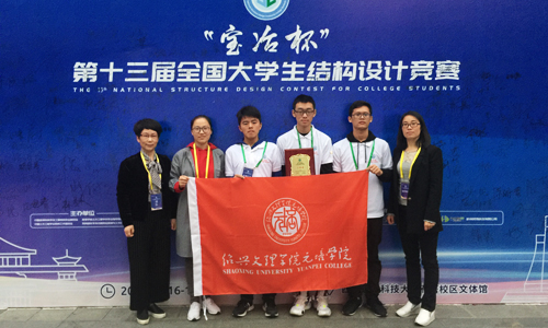 “我们来自同一个班级,为了同一个目标奋斗了近7个月的时间,一起面对困难和失败,也一起感受成功后的喜悦。”土木1702班的刘贤在采访中这样对记者说道。在刚刚结束的第十三届全国大学生结构设计竞赛中,他与刘超、徐浩潇两位同学在于周平、张聪燕、顾晓林老师的带领下代表学院获得了二等奖的好成绩。